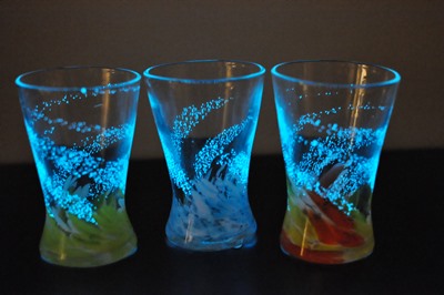 In this glass tumbler, luminous stones are confined by a special manufacturing method. They glow in the darkness