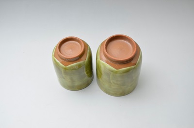 This is a pair of large and small ceramic Japanese tea cups.