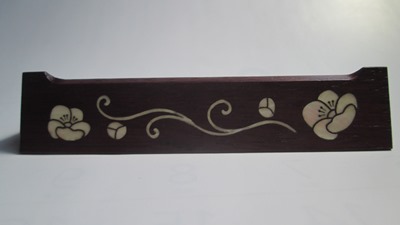 This product was all handcrafted with the traditional and originally developed techniques, inlaying mother-of-pearl into the wooden rest made of Purple Heart tree.