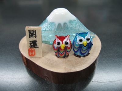 The gold and silver leaves used in Mt. Fuji and owls were made in Kanazawa, Japan, a very famous city for these high quality leaves.